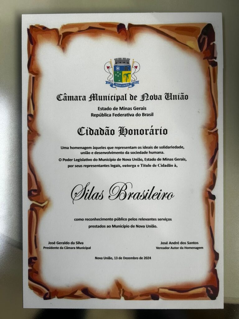 O título é um reconhecimento público pelos relevantes serviços prestados por Silas Brasileiro ao município, especialmente no fortalecimento da cafeicultura e no apoio contínuo aos pequenos e médios produtores da região. “Ao longo de sua trajetória pública, Silas tem sido um defensor incansável das causas do campo, levando desenvolvimento e voz aos municípios mineiros e de todo o Brasil”, disseram.